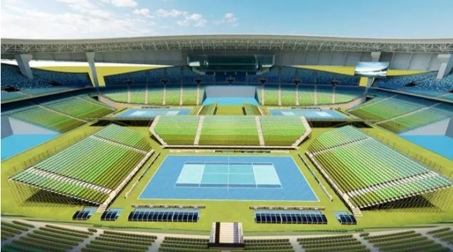 本次改造将取消现有塑胶跑道等田径比赛设施,并根据现有看台视线条件,反向推理,将足球场地下沉4.8米;还将利用足球场贵宾、运动员、裁判、组委会等功能用房临时改造,铺设网球专用地面作为网球比赛场地使用。