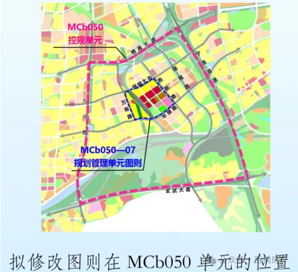 MCb050-07规划管理单元图则位于栖霞区丁家庄片区,东至燕新路、西至万寿路、南至华银路、北至瑞福大街,用地面积约77.90公顷。