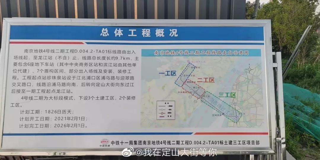 最近,有网友发布了一张4号线二期的总体工程概况图,根据图片显示,南京地铁4号线二期工程已经定于2021年2月1日开工,于2026年2月1日完工,工程耗时5年!相比于原计划2024年交付的日期来看,晚了两年的时间。虽然时间有所推迟,但工程牌上显示了具体的交付日期,给人们吃了一颗“定心丸”!