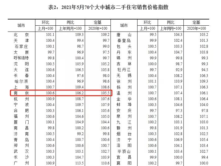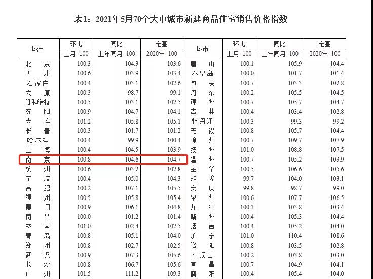 今天(6月17日)上午,国家统计局最新发布了2021年5月份70个大中城市商品住宅销售价格变动情况统计数据。其中,5月南京新房价格环比上涨0.8%、同比上涨4.6%,二手房价格环比上涨0.6%、同比上涨6.2%。