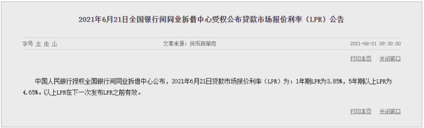 4.65%!连续14个月持平!刚刚,6月LPR报价出炉