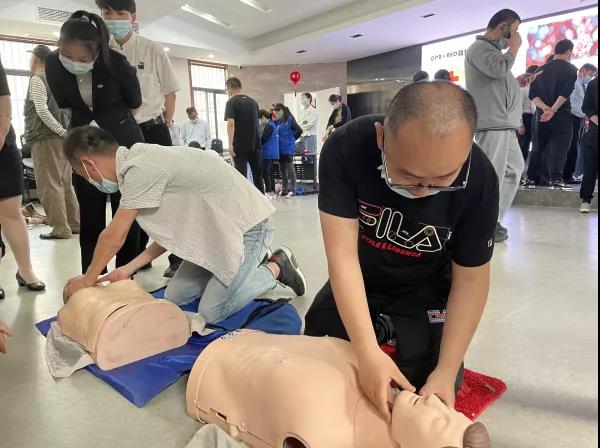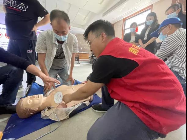 因此,针对园区老年业主比较多的情况,为了更好地服务业主,君颐东方生活+服务中心,于2021年5月21日积极安排君颐东方项目工作人员参加CPR+AED救护持证培训课程。