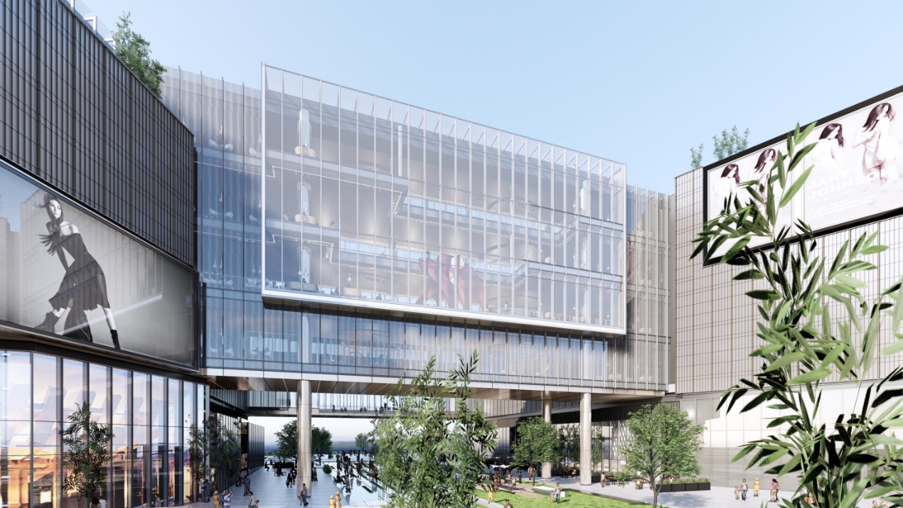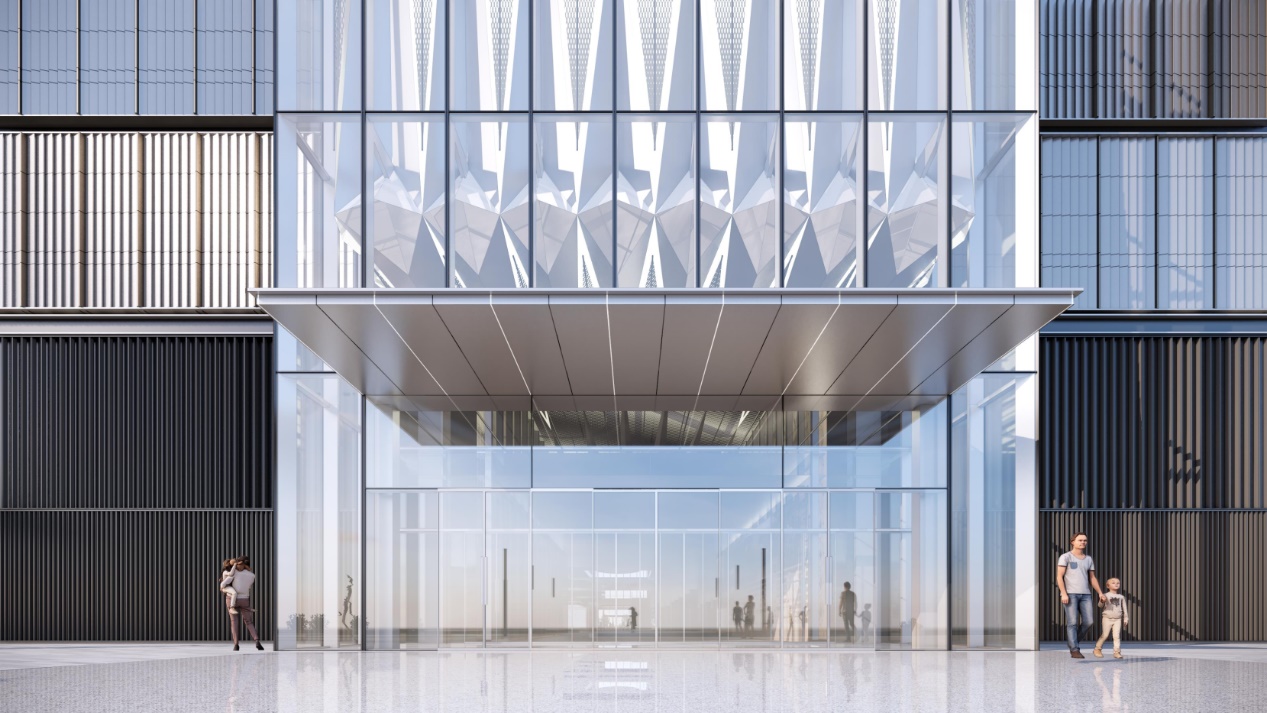 商业主入口将六层通高玻璃盒体穿插入建筑中,不仅呼应地铁结构,凸显地铁上盖建筑特色,更实现了历史氛围与现代建筑的完美融合。