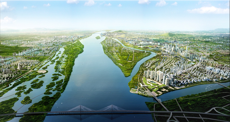 以长江大保护为统领,建设宜居宜业的新主城,江北可谓得天独厚。从八卦洲长江大桥到大胜关长江大桥段的30里江岸线将由以往的“生产型岸线”向“生活型岸线”转变,成为南京最佳的形象展示窗口,九大城市客厅分布两岸,其中江北新区独占两大城市客厅——绿水湾城市客厅、定山城市客厅。作为南京国家级城市湿地公园,与雅居乐汇港城为邻的绿水湾湿地公园江成为30里江岸线上的璀璨明珠,共塑“城在园中”的山水画卷。