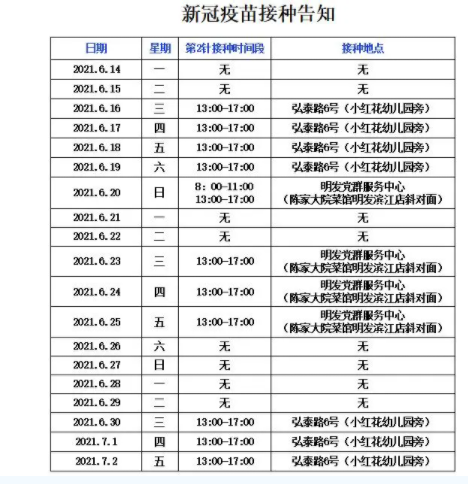 以下是6月底之前盘城街道新冠疫苗接种计划安排,请根据自己情况,及时携带身份证前来接种疫苗!