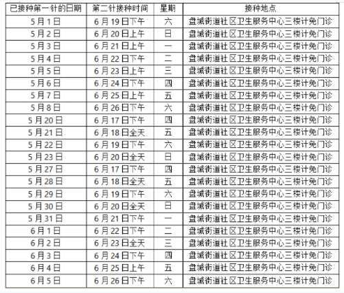 5月1日、5月2日接种第一针疫苗的,第二针接种时间为6月20日;
