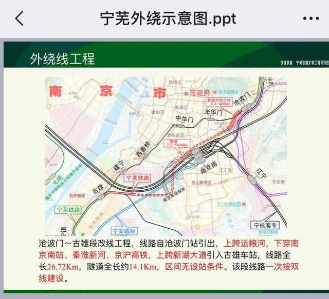 在今年的南京城建计划表和政府工作报告上,宁芜铁路外绕工程均被提及,预计今年启动。