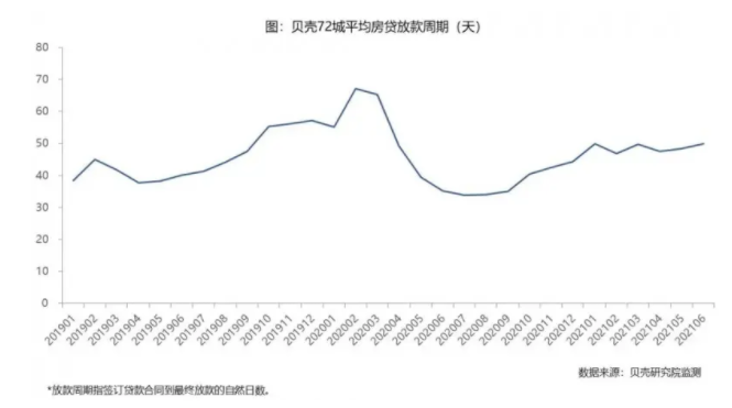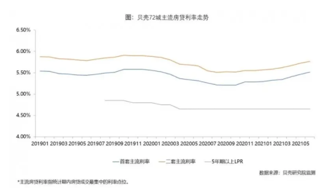 6月21日,贝壳研究院发布数据显示,6月贝壳研究院监测的72城主流首套房贷利率为5.52%,二套利率为5.77%,分别较5月上浮5个、4个基点。从放款周期来看,6月72城房贷平均放款周期为50天,较上月再延长2天。