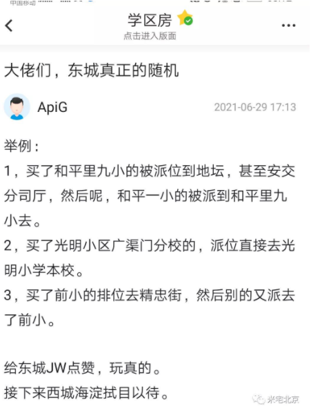 据报道,从实际情况来来看,北京东城区录取结果“杀伤力”最大,完全随机派位,甚至被称作“东城区已无学区房”。