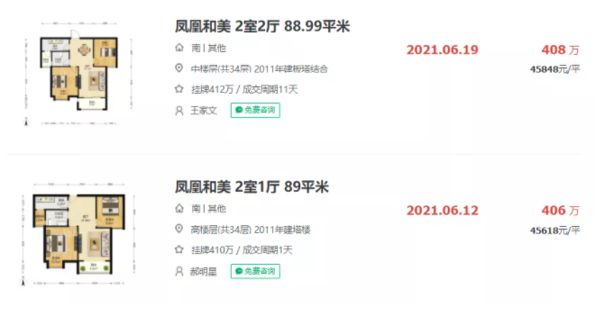 凤凰和美挂牌均价约4.4万/㎡。近日,成交房源单价普遍突破了4.5万/㎡,而且成交周期较短,最快仅1天就成交。