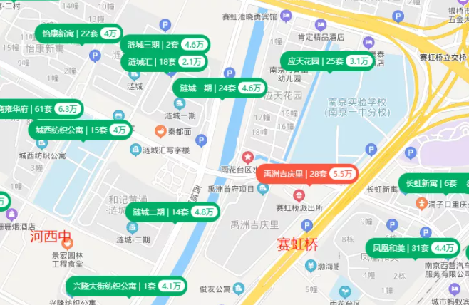2017年2月,禹洲吉庆里以3.55万/㎡价格收官,到如今二手房挂牌均价53466元/㎡,4年涨了近1.8万/㎡,甚至赶超了对面河西中的小区挂牌均价。