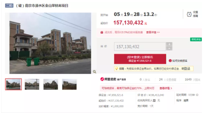 值得关注的是,该项目早在19年12月就惨遭流拍,此次二拍起拍价1.57亿,直降3900多万,打了8折,截止发稿前仍无人报名参拍。