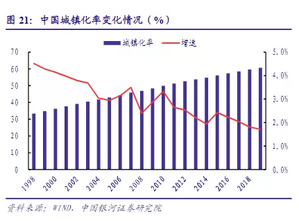 不仅如此,大环境下,我国镇化建设步伐的逐渐放缓,房地产行业势必开始出现降温。据中国银河证券研究院《房地产行业6月行业动态报告》数据显示,从1998 年到2019年这20年间,中国城镇化率从33.35%增长至60.60%,虽然相较于美国、英国、日本、韩国2018年的城市化率分别82.26%、83.40%、91.62%、81.46%,我国城镇化发展仍有空间,但高速增长的时代已经过去。