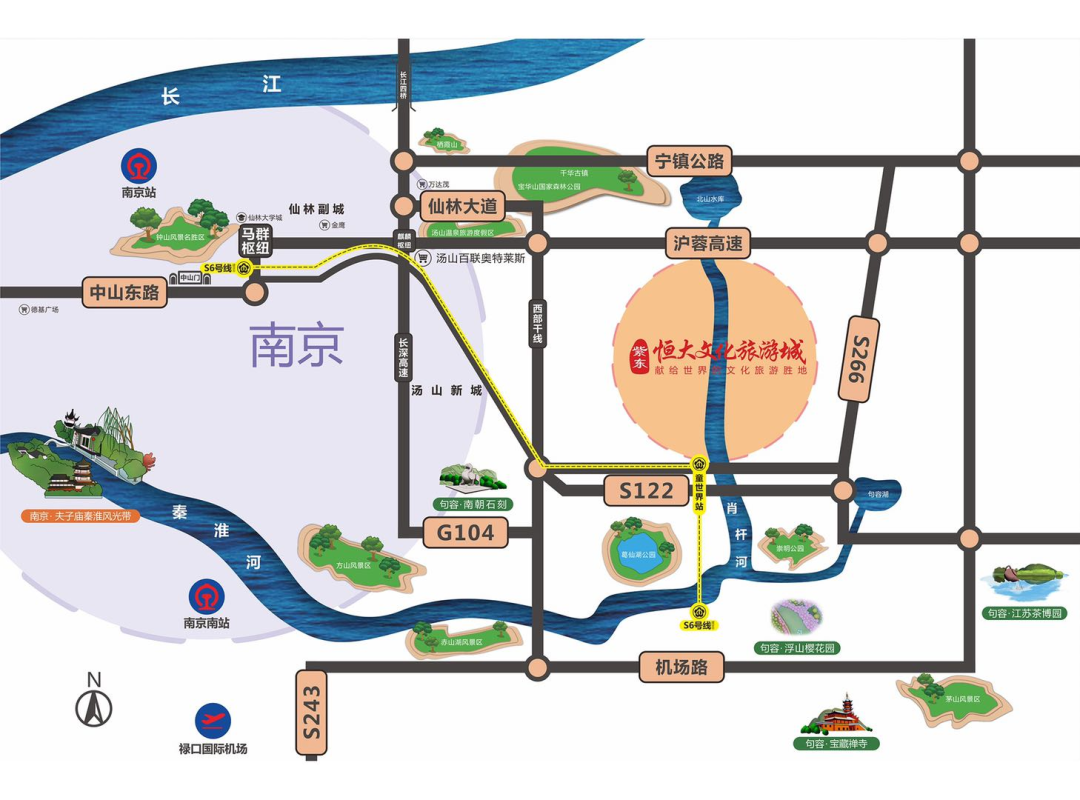 在交通方面,目前正在建设中的S6号线设立的“童世界”站紧临恒大文化旅游城,今年年底就可通车,通车后可直达南京。规划中的南沿江城际铁路(南京南站-上海虹桥)未来将与S6号线相汇于句容站,12分钟即可直抵南京!