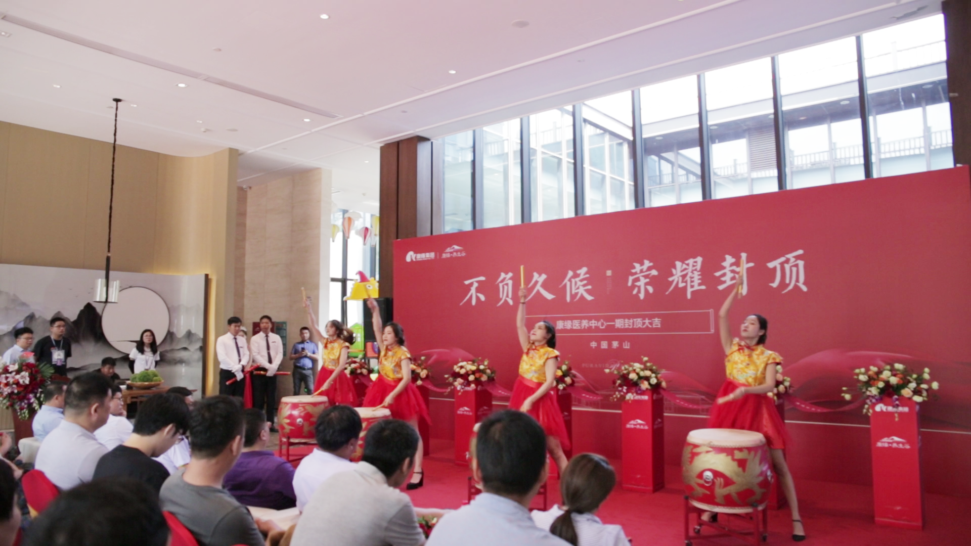 威风凛凛,龙鼓震天,封顶仪式伴随着阵阵鼓声拉开序幕。在热烈掌声与全场目光聚集之下,江苏康缘集团行政总监/江苏康缘健康管理有限公司董事长曹小保先生上台致辞。曹总在发言中介绍了康缘集团四十余载以来的发展历程,集团始终秉承“振兴国药 报效祖国”的使命,为健康中国护航。细节成就美好,时光鉴证品质,此次康缘医养中心一期工程,在保质保量的前提下荣耀封顶,对所有付出努力的人员表示了衷心的感谢。而我们在追求卓越的道路上永不止步,项目将继续肩负建设美好生活之责,按理想的蓝图为大家带来高品质的多元化服务。