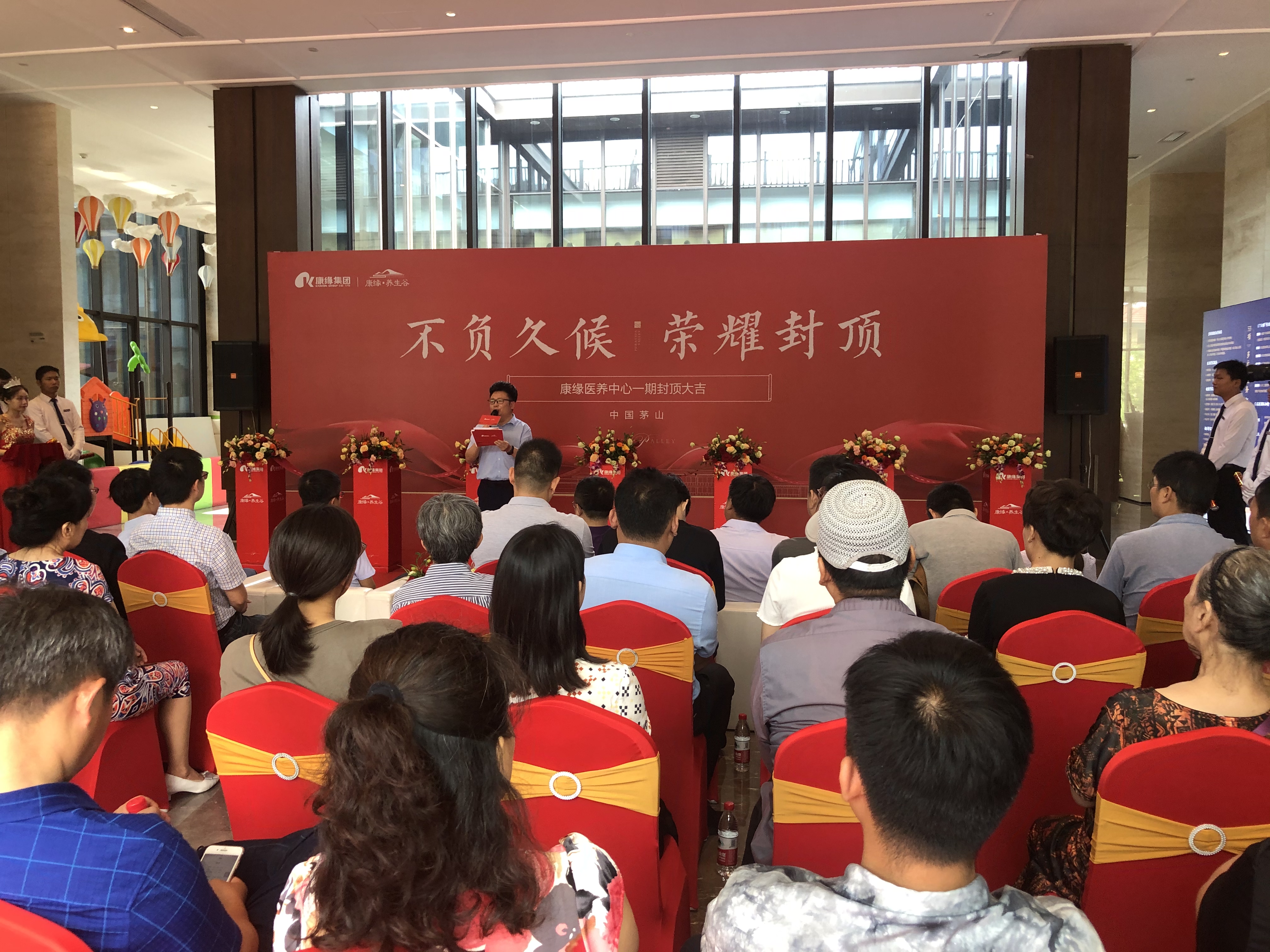 7月18日,康缘养生谷医养中心一期封顶仪式于中国茅山圆满举行。封顶仪式现场,江苏康缘集团执行总裁朱健俭先生、江苏康缘集团行政总监/江苏康缘健康管理有限公司董事长曹小保先生、江苏康缘健康管理有限公司副总经理邹涛先生、范庆明先生、王淏先生和江苏康缘健康管理有限公司职能中心负责人王天君女士等数位领导以及项目建设单位、媒体记者等百余嘉宾汇聚一堂,共同见证康缘养生谷医养中心一期封顶仪式的荣耀时刻。