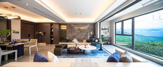 此外,部分边户的约128㎡户型坐落在南农河畔,于是越江时代还设计了观景的客餐厅,给业主带来IMAX级全面屏观景体验。