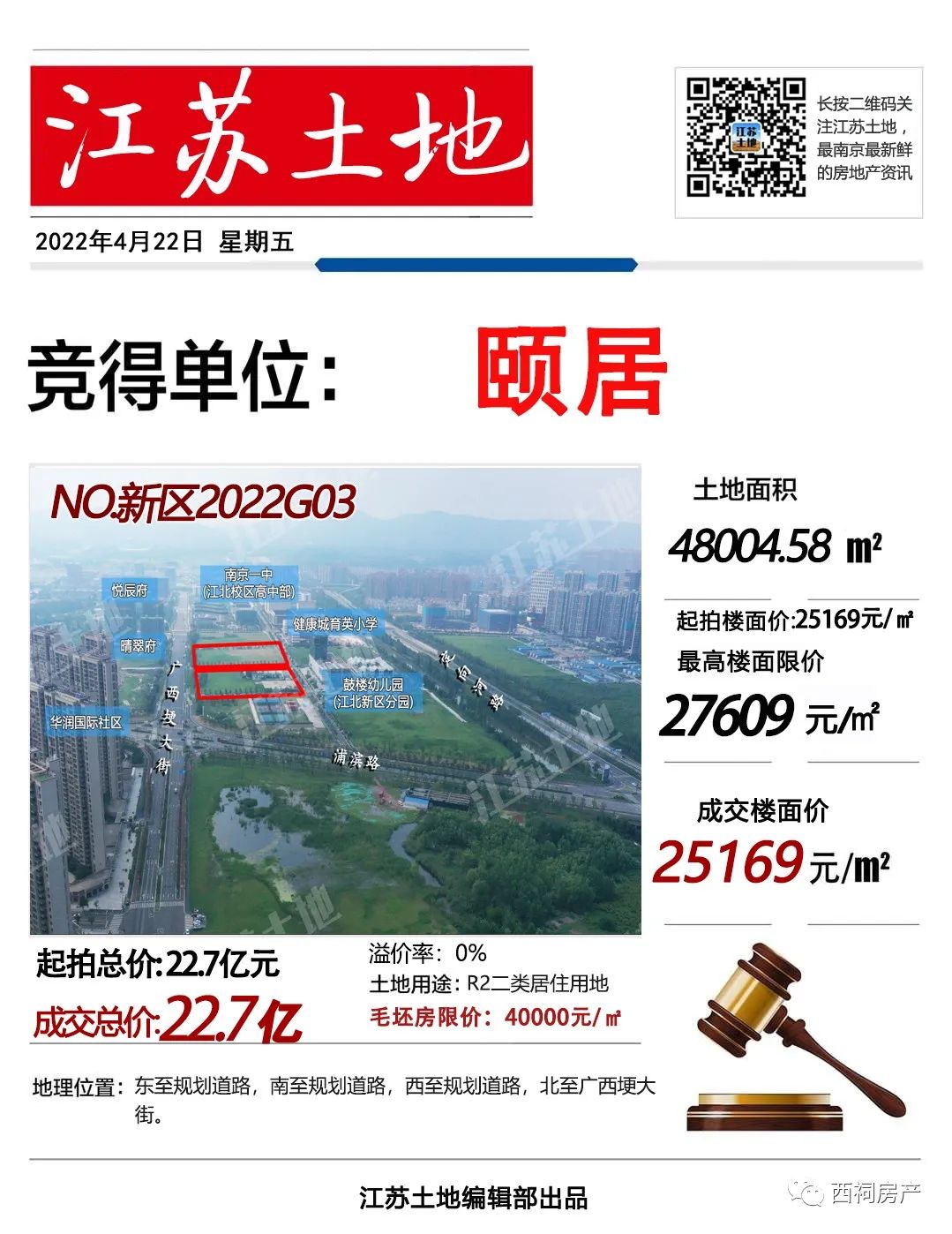 4月22日,颐居以底价22.7亿元拿下该地块,成交楼面价25169元/㎡,未来毛坯房销售限价40000元/㎡,未来该项目加上全装修和升级装修包,房价或将冲击4.5万/㎡。