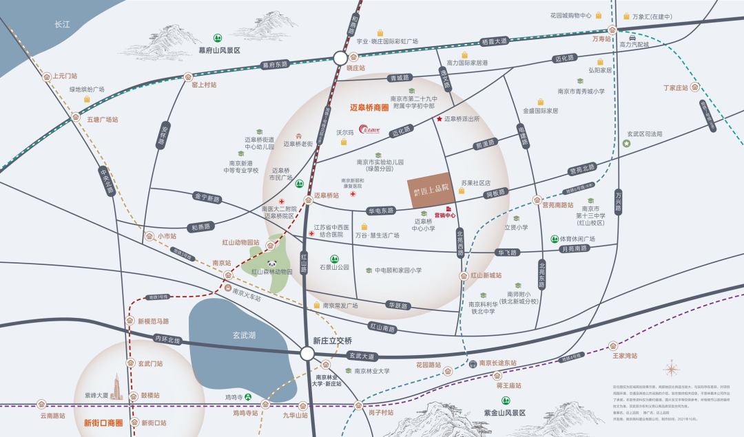 项目位于迈皋桥板块,周边配套较为成熟,交通方面,地铁1号线迈皋桥站距离迈上品院约700米左右,6号线、7号线正在建设中;教育方面,项目一路之隔即为迈皋桥中心小学,此外项目附近还有科利华铁北中学、中电颐和家园小学等。