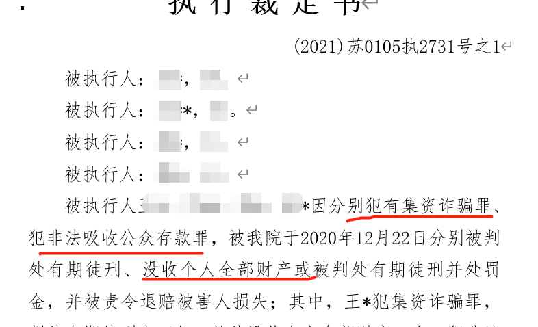 该房源之所以被拍卖,因房主文某明参与了“候鸟系”集资诈骗案,被判非法吸收公众存款罪,依法判刑七年零六个月。涉案金额超4亿,名下资产也被没收处置。执行裁定书披露,他曾动用了非法吸收的公众存款用于买房、买车位,将产权登记在其妻子名下。