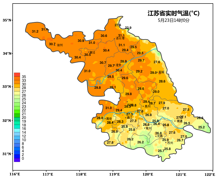 苏南地区气温略低