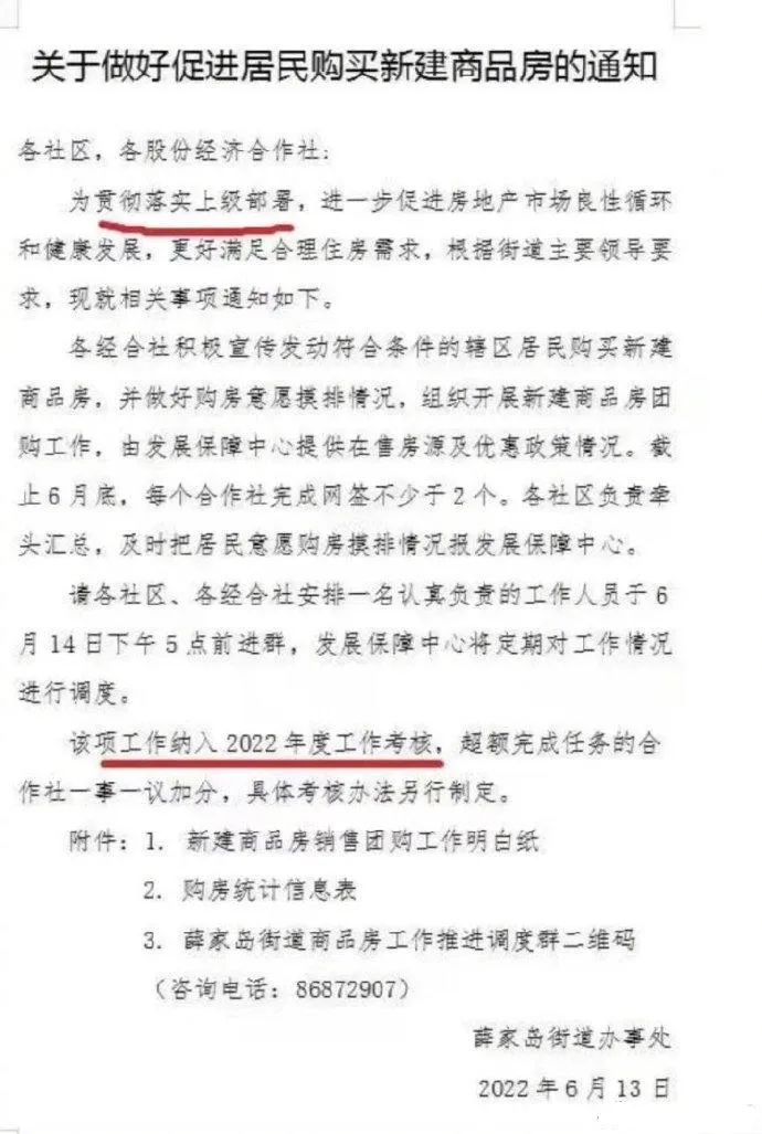 近日,青岛某街道办事处发布的一则《关于做好促进居民购买新建商品房的通知》火了。通知显示,街道办不仅要组织商品房团购,促进居民买房还被纳入了工作考核。