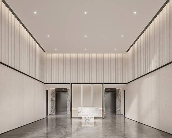 ⑤公区大堂超配:不惜时间与成本,社区奢配约6-6.2m双层挑高大堂,全南向入户