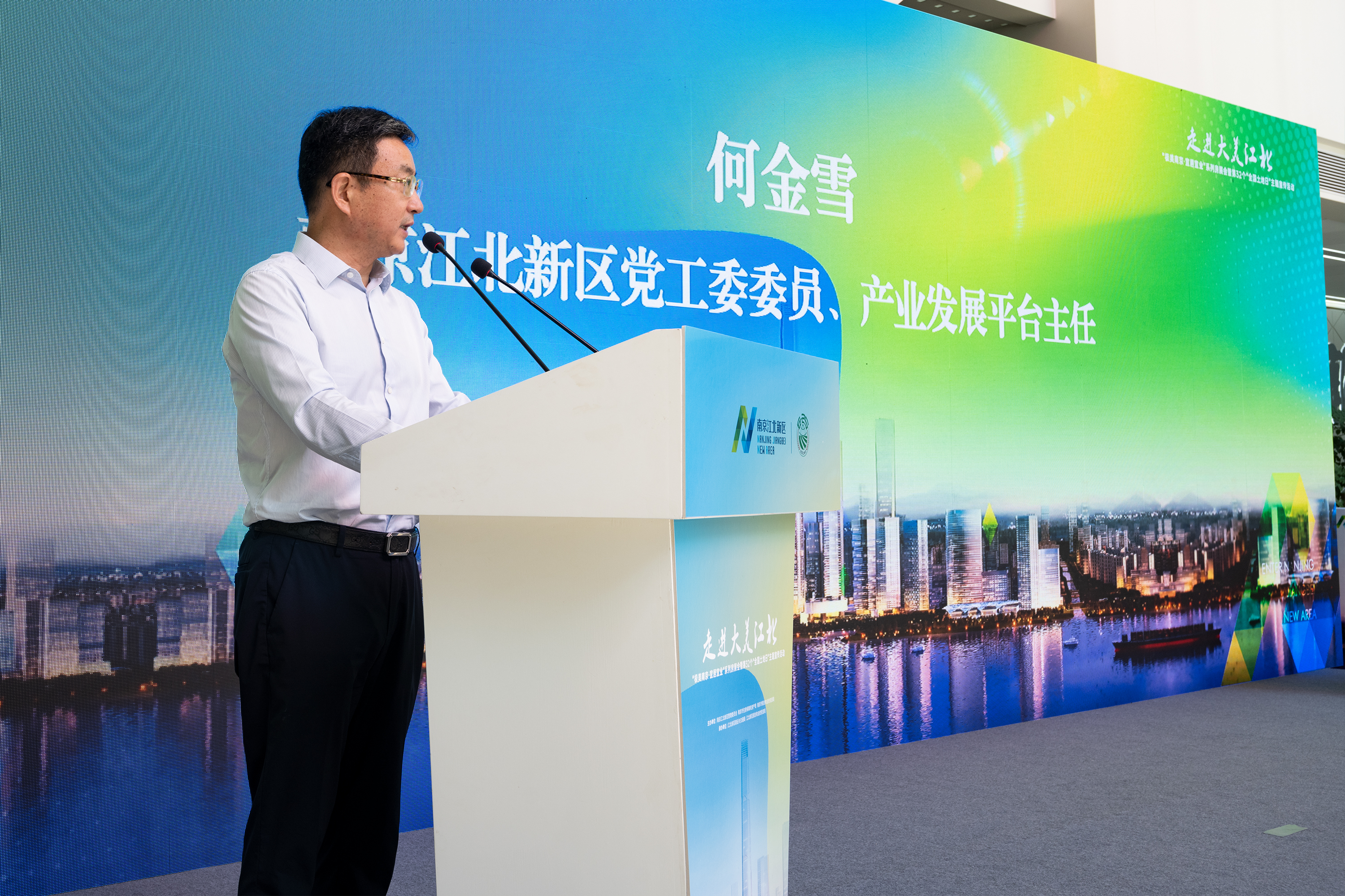 何金雪在致辞中简要介绍了江北新区获批成立7年以来城市发展所取得的成绩。