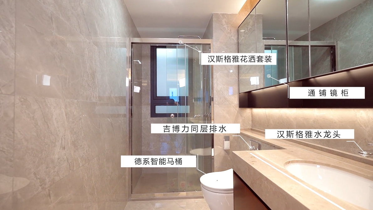 另外品牌配置上也是别出心裁,精装产品均来自德系高定&一线品牌。厨房+阳台的德国博世品牌家电多达六件,皆在交付标准中,另还有德国铂浪高水槽&抽拉式水龙头、德国唯宝马桶、德国汉斯格雅恒温花洒、意大利阿里斯顿热水器、瑞士吉博力同层排水等一系列国际大牌奢装。