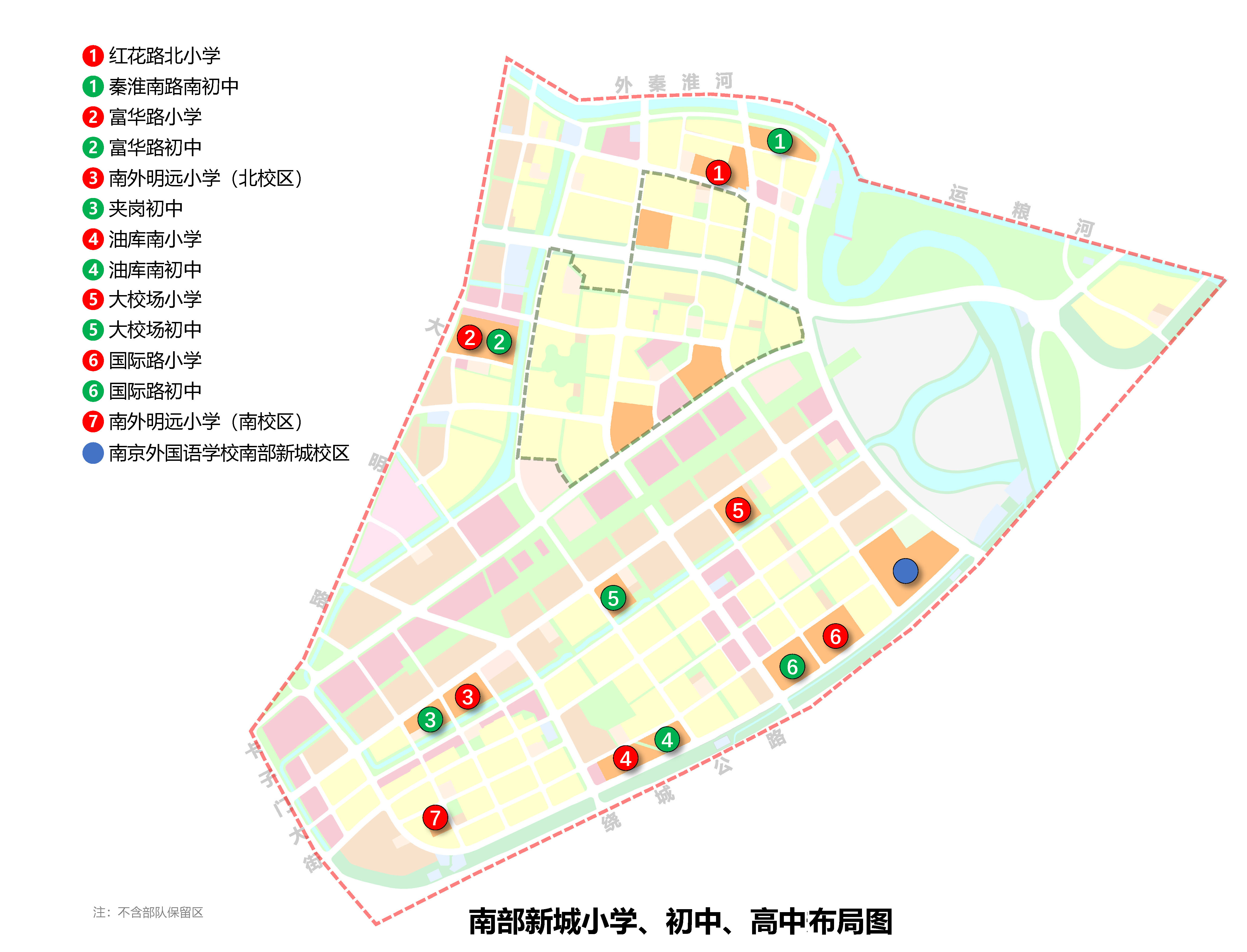 值得一提的是,南部新城未来共有1所高中、6所初中、7所小学、20所幼儿园。秦淮区副区长卢杰介绍,在南部新城将以“办家门口的好学校”为愿景,建立南京外国语学校南部新城教育集团。