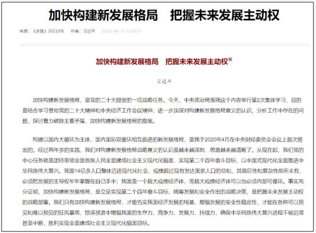4月15日《求是》杂志刊登一篇雄文《加快构建新发展格局 把握未来发展主动权》!