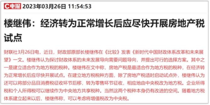 有观点认为,房地产税落地势在必行,甚至2023年就会有真正试点城市。