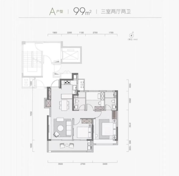 99㎡三室两厅两卫↓