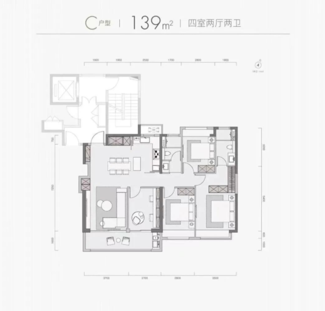 139㎡四室两厅两卫↓