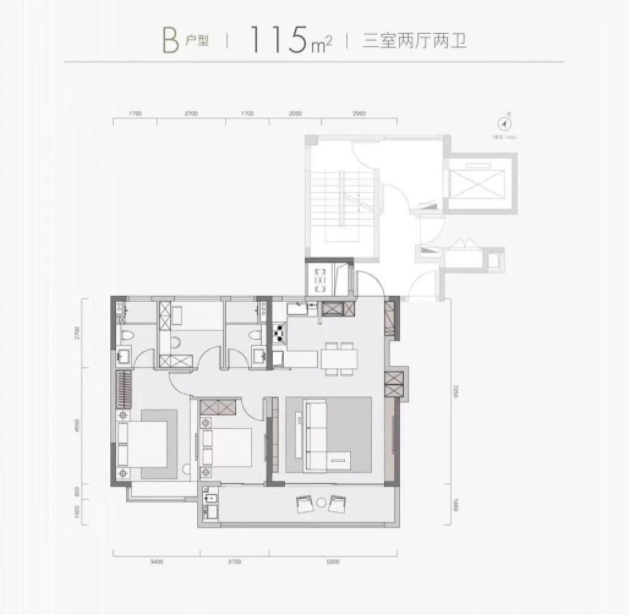 115㎡三室两厅两卫↓