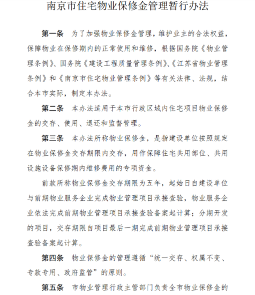 突发!南京出台物业保修金新规