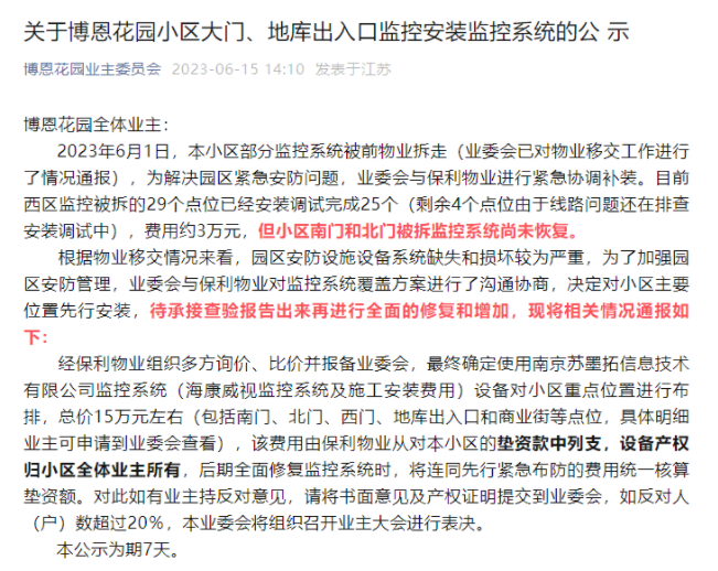 更换物业后,小区近期筹划给小区重装道闸门禁系统。