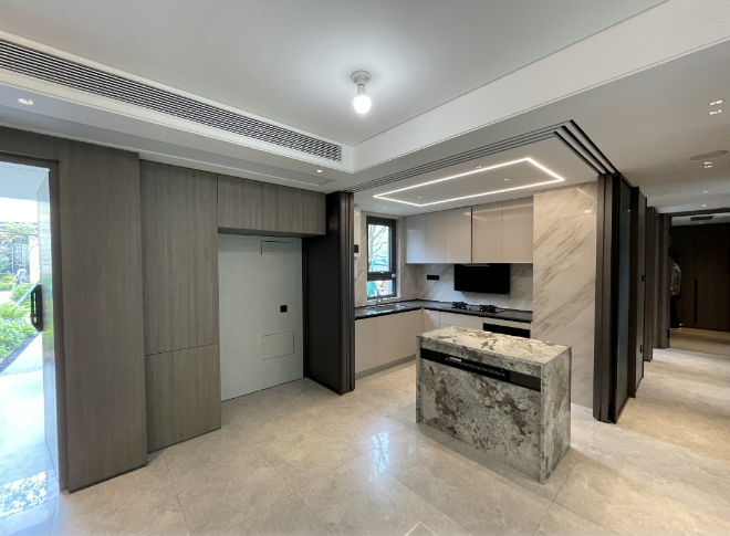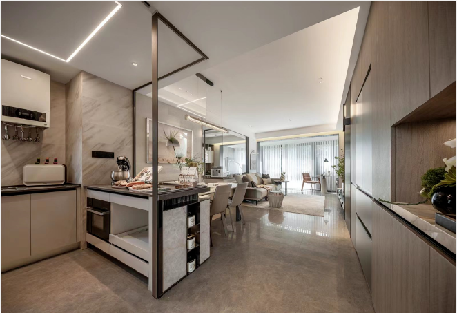 厨房部分采用玻璃隔窗设计,厨电方面,包含方太四件套,斯麦格垃圾处理器(或同档次品牌)等。同时有南京水务集团直饮水配置。