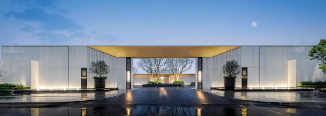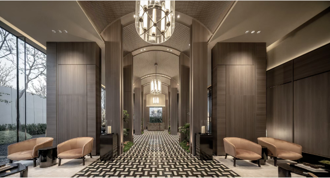二进式宝门廊,归家的仪式感拉满!长约48米、高约6.6米的宝门廊,厚重的贝金米黄石材,真正将隐与奢进行到底!