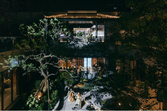 别开生面的沉浸式游园,让到场嘉宾们叹为观止。新颖的黑白对弈签到形式,别具一格令人眼前一亮;激动人心的剪彩瞬间,迎候会所落成的华美时刻。华丽典雅的会所内堂,八大主题私享空间有序分布,观赏精致灵动的茶艺表演,品鉴热情四溢的花式调酒,时不时与扮相纷呈的古装人物邂逅偶遇,仿若穿梭于时间长河,收获惊喜无数;嘉宾们齐聚下沉式庭院,当国粹昆曲剧目《牡丹亭》圆润柔美的唱腔声起,沉浸于“游园”、“寻梦”悠扬徐缓的音韵中,回味无穷;聆听现代弦乐演绎的圆舞曲、探戈等经典曲目,顿感荡气回肠的气韵扑面而来。当古风国粹与现代弦乐美好相逢,可谓融汇古今集萃一园。一场移步异景的游园之旅,一席酣畅淋淋的视听享宴,欢享佳境已成的荣耀时刻。