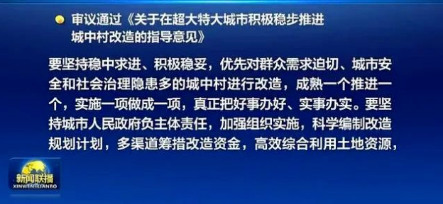 就在不久前,国务院常务会议审议通过《关于在超大特大城市积极稳步推进城中村改造的指导意见》。