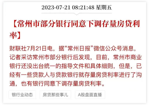 此外7月21日常州官方发文称,部分银行同意下调存量房贷利率!