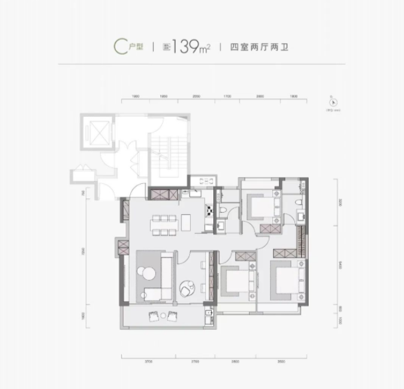 建面约139㎡四室两厅两卫