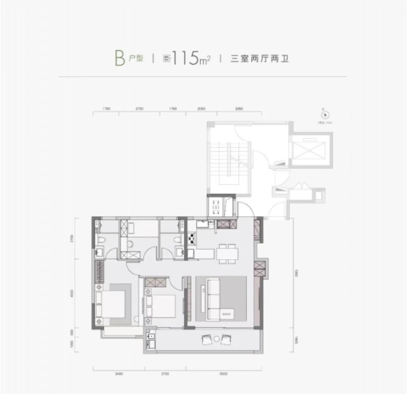建面约115㎡三室两厅两卫