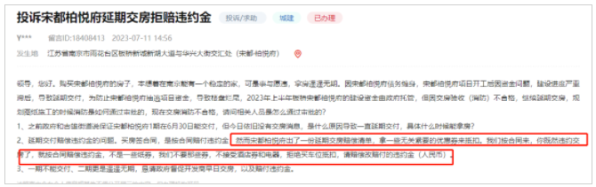 此外,有业主表示,宋都柏悦府延期交房拒赔违约金,出了一份延期交房赔偿清单,拿优惠券来抵扣违约金。