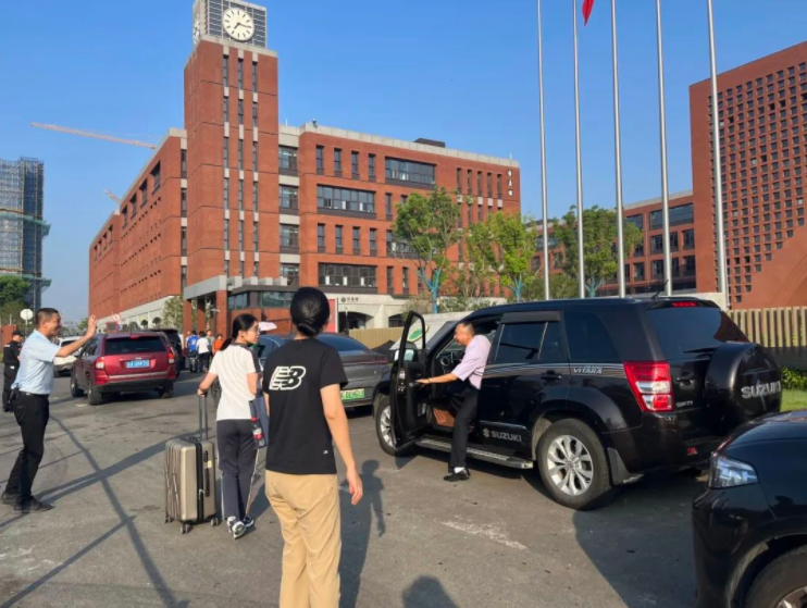 上午七点,在南外南部新城校区门口,南部新城城市物业公司现场保障人员正忙得满头大汗,不断穿梭在各个车辆间,引导车辆即停即走,时不时帮学生们从后备箱拿取行李。据悉,南部新城管委会共安排了10余名巡查队员,联合秦淮区红花街道网格员8人、交警5人共同参与保障任务。