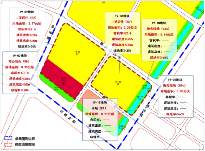 该地块紧邻2号线兴隆大街站、集庆门大街地铁站。规划调整后,优原一幅商住混合用地(河西管委会所在地)拟分割为一块占地约3.1公顷的二类居住用地以及一块占地约2公顷的商办混合用地。