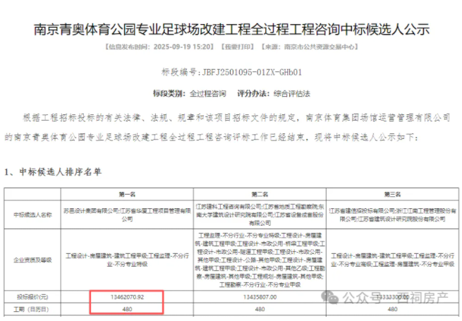 今年9月,南京青奥体育公园专业足球场改建工程全过程工程咨询中标候选人已公示,服务期限为480日历天,这意味,接下来项目即将开始桩基、拆除等工程。