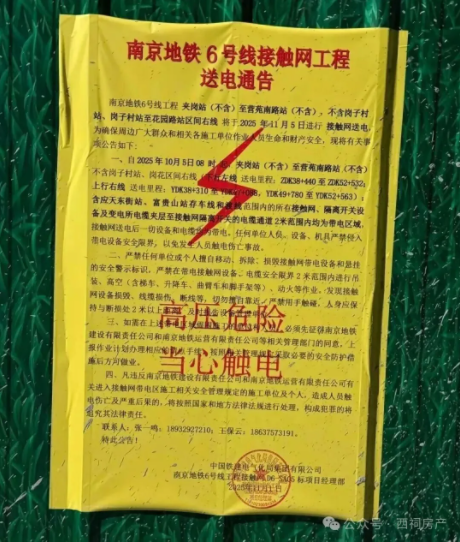 本月初,有网友爆料,南京地铁6号线爆夹岗站(不含)至营苑南路站(不含),不含岗子村站、岗子村站至花园路站区间右线,将于11月5日进行接触网送电。