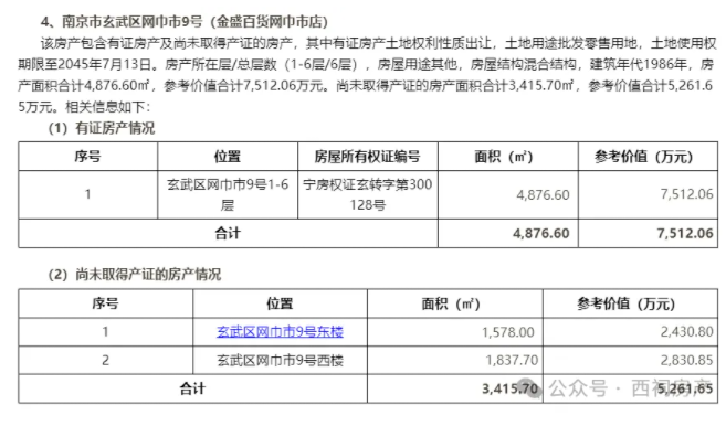 这些资产中除了金盛百货、华彩荟、太平商场、山西路百货大楼等一批商场商铺外,还有此前遭遇火灾的金盛百货中央门店、栖霞区合班村375号等土地使用权。